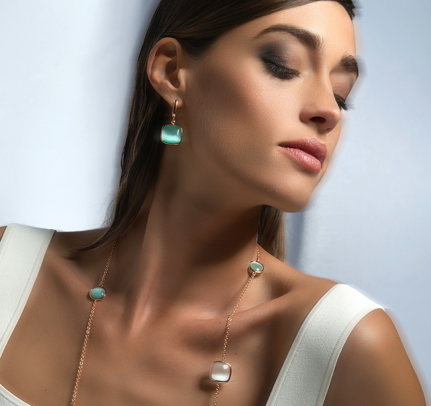La collezione Oblò si fa portavoce di una femminilità audace e sofisticata, con le sue pietre colorate che raccontano una storia di energia ed eleganza. Il design distintivo accoglie la pietra come un’opera d’arte, esaltando la bellezza naturale della donna che lo indossa.